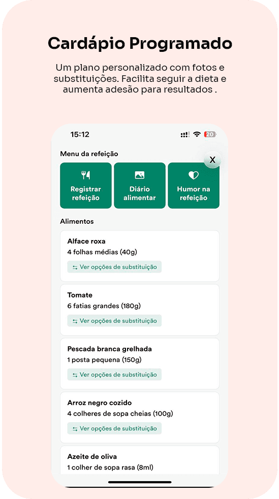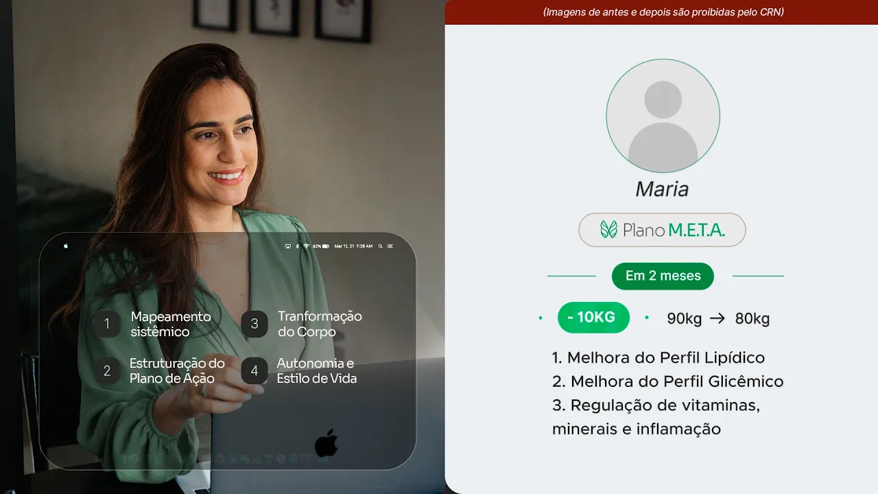 Você receberá um plano alimentar personalizado, com orientações práticas, sugestões de substituições e estratégias para o dia a dia, inclusive para quem tem rotina corrida.